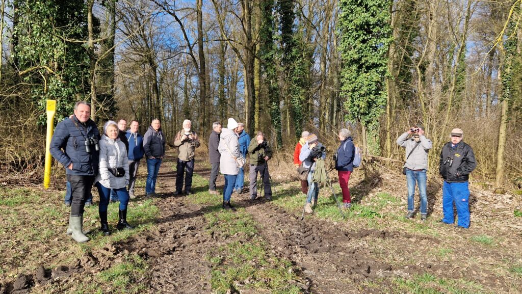 Zu unserer ersten vogelkundlichen Führung in Rohrbach fanden sich bei bestem Wetter 20 Interessierte ein. Unter der Führung unseres Vogelkenners Hermann Duhm ging es in den Birkenwald begleitet von einem bunten Vogelkonzert. Jetzt wird es Frühling, verriet uns die Amsel. Die Bunt- und Mittelspechte begleiteten uns mit ihrem Klopfen am Baum. Der Grünspecht durch seinen eindringenden Ruf. Der schöne Gesang des Rotkehlchens und der Singdrossel waren ein weiteres Highlight, die Singdrossel zu sehen im Portrait durch das Spektiv. Aber auch die Kohl- und Blaumeise, der Buchfink und die Stare brauchten sich nicht zu verstecken. Über unseren Köpfen flatterten ein Schwanzmeisenpaar. Am Waldesrand ästen Rehe auf den Feldern. An der Eulenhorst Hütte angekommen gab es Getränke und eine kleine Stärkung, umgeben vom traumhaften Panorama des Kraichgaus. Eine rundum gelungene vogelkundliche Wanderung.